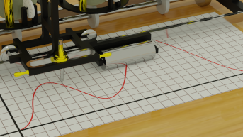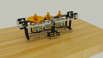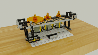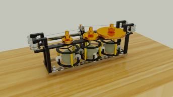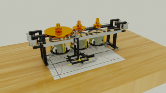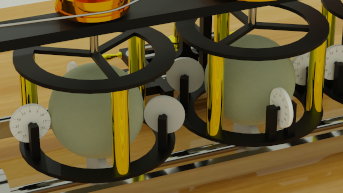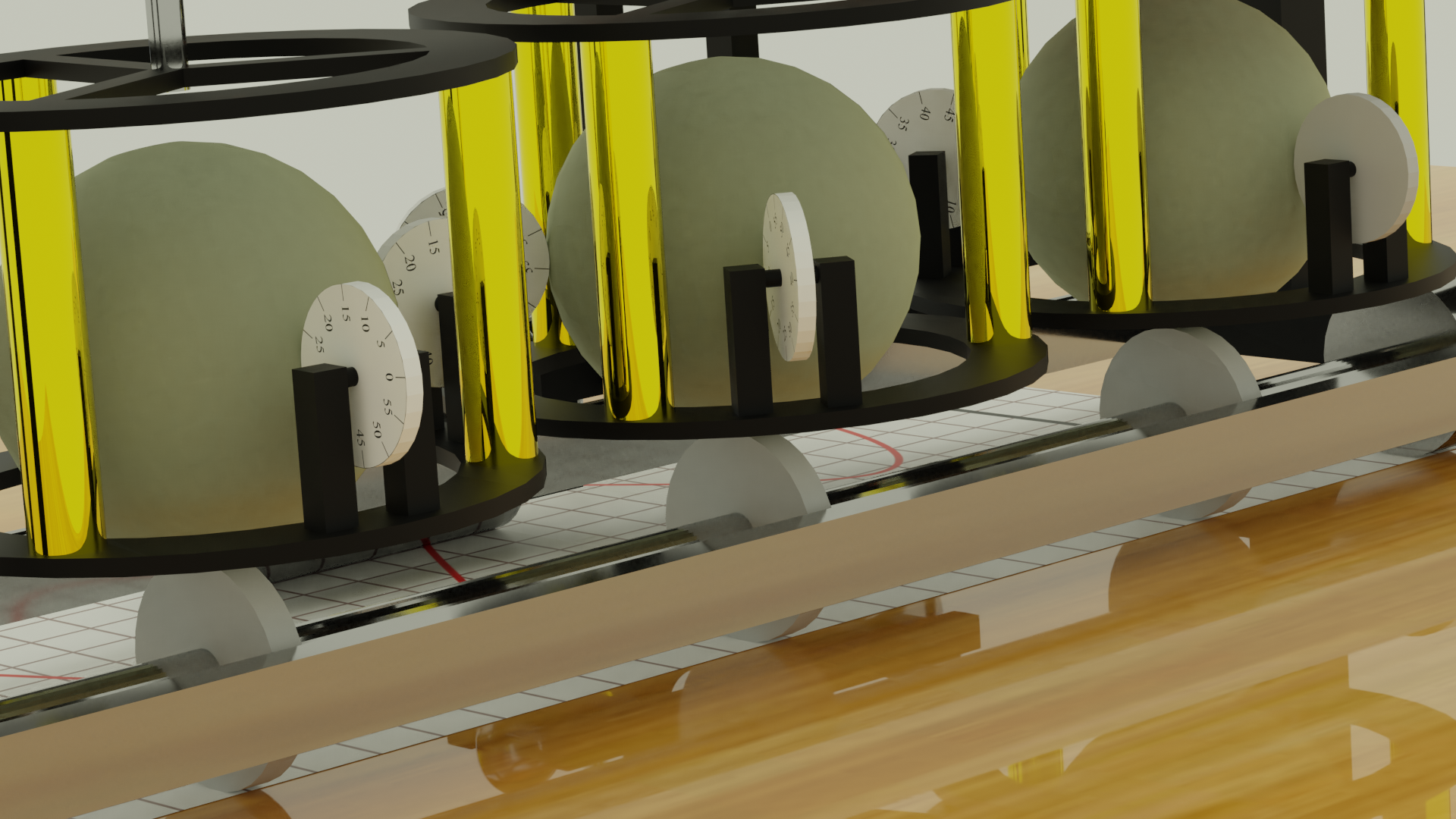 Now imagine we are at a certain value of \(x\) and we make a small move \(dy\) along the y-axis. This will first rotate the glass spheres by the same quantity \(dy\). Now the dials will rotate differently, depending on their alignment (as seen in the video), which depends on angle \(\theta\). Therefore, the first dial will only make a final rotation of \(cos(\theta)dy\) (at \(\theta=0\) the dial is built to be perfectly aligned with the sphere, having a move \(dy\)).